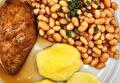 Gekookte Aardappelen, Witte Bonen in tomatensaus, Kalkoenfilet, Braadjus