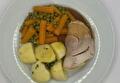 Gekookte Aardappelen, Wortelen en Doperwten, Kiprollade en Gevogeltejus
